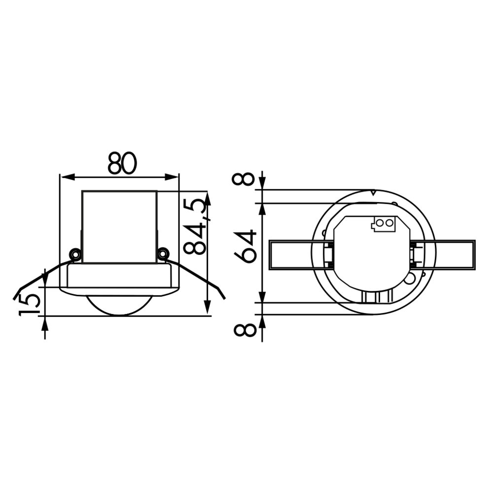With activatable motion LED, deactivatable via ETS parameter, communication object or remote control